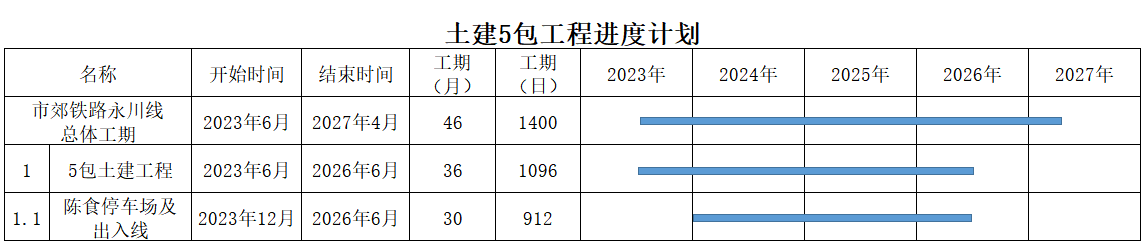 市郊鐵路重慶中心城區(qū)至永川線工程計劃施工總工期60個月。本招標項目計劃于2023年6月30日開工,計劃1096日歷天按合同約定實施和完成本承包工程。
