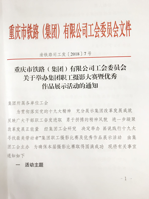 為貫徹落實(shí)黨的十九大精神充分展示集團(tuán)改革發(fā)展成就反映廣大干部職工奮發(fā)進(jìn)取、勇于拼搏的精神風(fēng)貌市鐵路集團(tuán)工會(huì)擬于近期舉辦“畫(huà)說(shuō)踐行十九大尋找最美勞動(dòng)者”職工攝影比賽