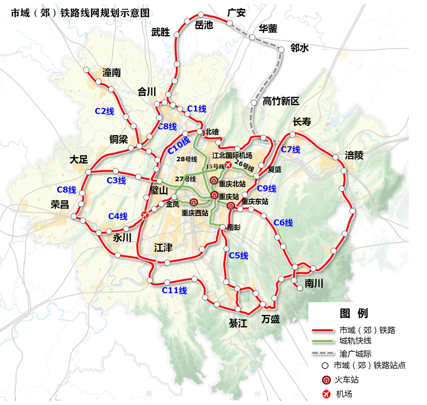 市域(郊)鐵路線網(wǎng)規(guī)劃示意圖