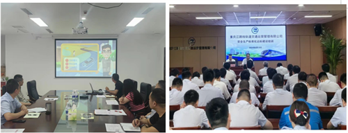 (一)開展安全教育培訓(xùn)活動。集團(tuán)系統(tǒng)組織開展“安全生產(chǎn)大家談”“班前會”“以案普法”等活動156場次,參與3502人次;組織觀看“安全生產(chǎn)月”主題宣傳片、《安全生產(chǎn) 責(zé)任在肩》《危險(xiǎn)降臨》警示教育片、“人人講安全、個個會應(yīng)急—暢通生命通道”宣傳片等139場次;邀請重慶社安消防培訓(xùn)教官開展消防知識培訓(xùn),組織職工學(xué)習(xí)《火場逃生必備常識》專題教育片,開展針對火災(zāi)、城市內(nèi)澇自救互救技能培訓(xùn);江跳線運(yùn)營公司邀請安全專家以“安全生產(chǎn)標(biāo)準(zhǔn)化達(dá)標(biāo)建設(shè)”為主題,開展全員安全教育培訓(xùn)活動。