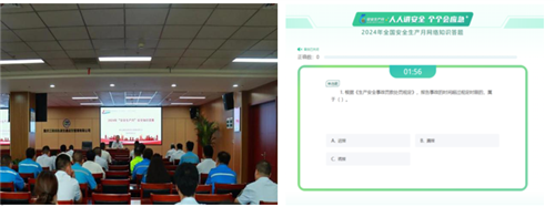 (二)舉辦安全知識競賽。以“人人講安全、個個會應(yīng)急——暢通生命通道”為主題,組織開展安全知識競賽活動,競賽內(nèi)容涵蓋安全生產(chǎn)法律法規(guī)、安全操作規(guī)程、應(yīng)急救援、事故案例分析等多個方面,充分考驗(yàn)了參賽員工的安全生產(chǎn)知識儲備和應(yīng)用能力。組織干部職工參加“安全生產(chǎn)月”網(wǎng)絡(luò)知識答題活動,共計(jì)參與2211人次,進(jìn)一步提高全體員工的安全意識和安全技能,營造“人人關(guān)心安全,人人重視安全”的良好氛圍。