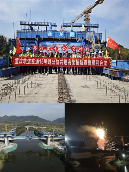 2024年3月31日凌晨,經(jīng)過連續(xù)4個小時施工作業(yè),隨著21方混凝土的最后一泵注下,標(biāo)志著重慶軌道交通15號線御臨河公軌共建高架橋下層軌道橋中跨順利合龍。