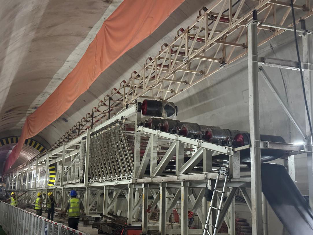 現(xiàn)沙石區(qū)間右線渣土運(yùn)輸皮帶輸送機(jī)安裝完成,極大地提高了區(qū)間右線TBM向石橋鋪站方向掘進(jìn)施工階段出渣、運(yùn)渣的綜合效率,為后續(xù)施工提升施工效率、打開(kāi)大干局面奠定了良好基礎(chǔ)。下一步項(xiàng)目部將繼續(xù)緊抓關(guān)鍵工期節(jié)點(diǎn),施工過(guò)程中及時(shí)對(duì)接、協(xié)調(diào)、解決施工問(wèn)題,進(jìn)一步加強(qiáng)過(guò)程中的技術(shù)服務(wù)和質(zhì)量管控,安全優(yōu)質(zhì)高效完成施工任務(wù)。