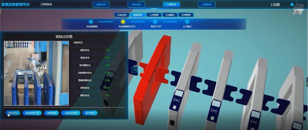 傳統(tǒng)軌道交通車站開(kāi)站及關(guān)站過(guò)程復(fù)雜,涉及設(shè)備繁多,且絕大部分設(shè)備需要人工啟停,導(dǎo)致開(kāi)關(guān)站耗時(shí)較長(zhǎng),而江跳線將一鍵開(kāi)關(guān)站功能應(yīng)用到全線車站。該功能結(jié)合運(yùn)營(yíng)實(shí)際需求優(yōu)化了開(kāi)關(guān)站流程和聯(lián)動(dòng)項(xiàng)目,通過(guò)對(duì)CCTV實(shí)時(shí)畫(huà)面、廣播語(yǔ)音播報(bào)、電扶梯、卷簾門(mén)等相關(guān)專業(yè)設(shè)備的聯(lián)控,科技賦能提高客運(yùn)人員開(kāi)關(guān)站效率,為實(shí)現(xiàn)江跳線智能化管理和智慧化運(yùn)營(yíng)邁進(jìn)重要的一步。