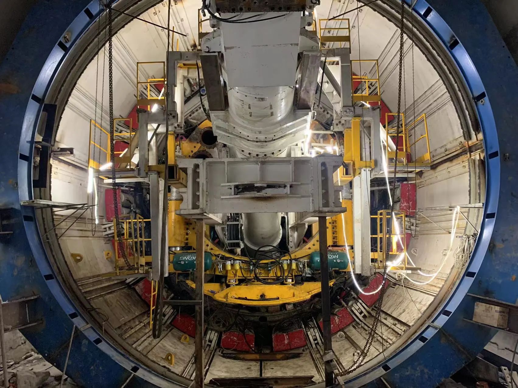雙模是最大的亮點。因為在地下80多米掘進,地質比較復雜,經常會遇到涌水和軟硬不均的地質,不能像傳統(tǒng)的軌道區(qū)間施工,單純使用土壓或泥水盾構模式,所以重慶交通開投鐵路集團和中鐵一局等創(chuàng)新定制了具備土壓盾構機和泥水盾構機兩種功能的雙模盾構機。當它掘進時,可根據(jù)遇到的不同地層情況,實現(xiàn)一鍵切換,進行快速掘進,工期比傳統(tǒng)的盾構至少節(jié)約3個月。