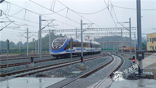 6月22日15時,伴隨著一聲清脆的鳴笛,身披藍(lán)色外衣的電客車停靠在銅梁西站,在一片歡呼聲中,重慶市域鐵路璧銅線熱滑試驗圓滿完成。